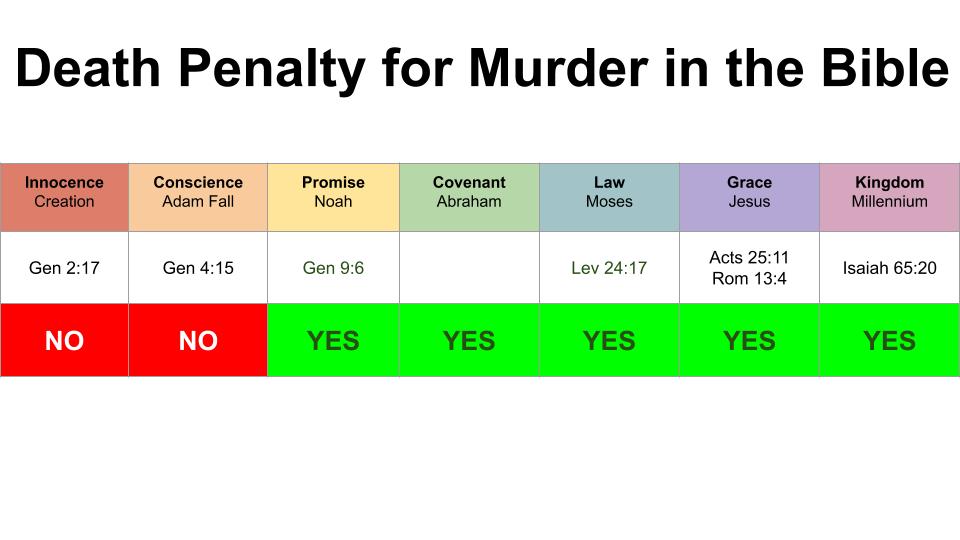 Murder is prohibited, but the penalty varies by dispensation. God did not command Cain to be killed by man – rather He protected Him. This would change.