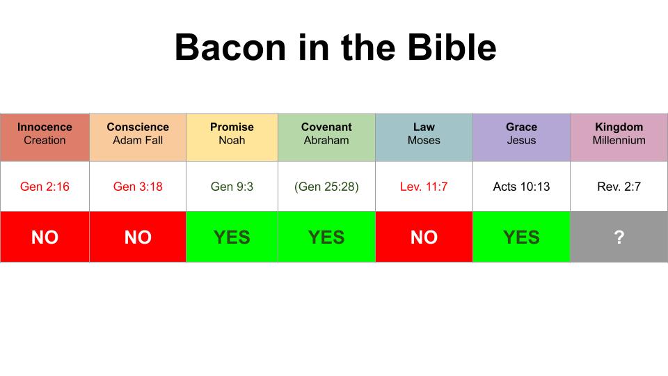 Can people who seek to have a right relationship with God eat bacon? Depends on where in dispensationalism you are!