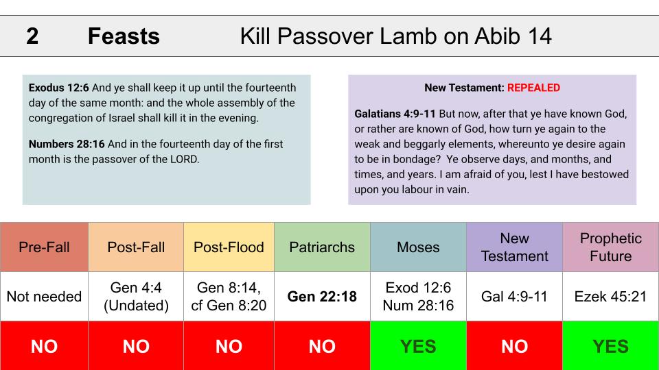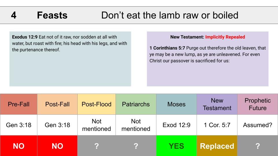 So this is a new commandment – Abraham was not warned about leaven. And yet when we look at the New Testament, virtually every dated festival is abrogated: